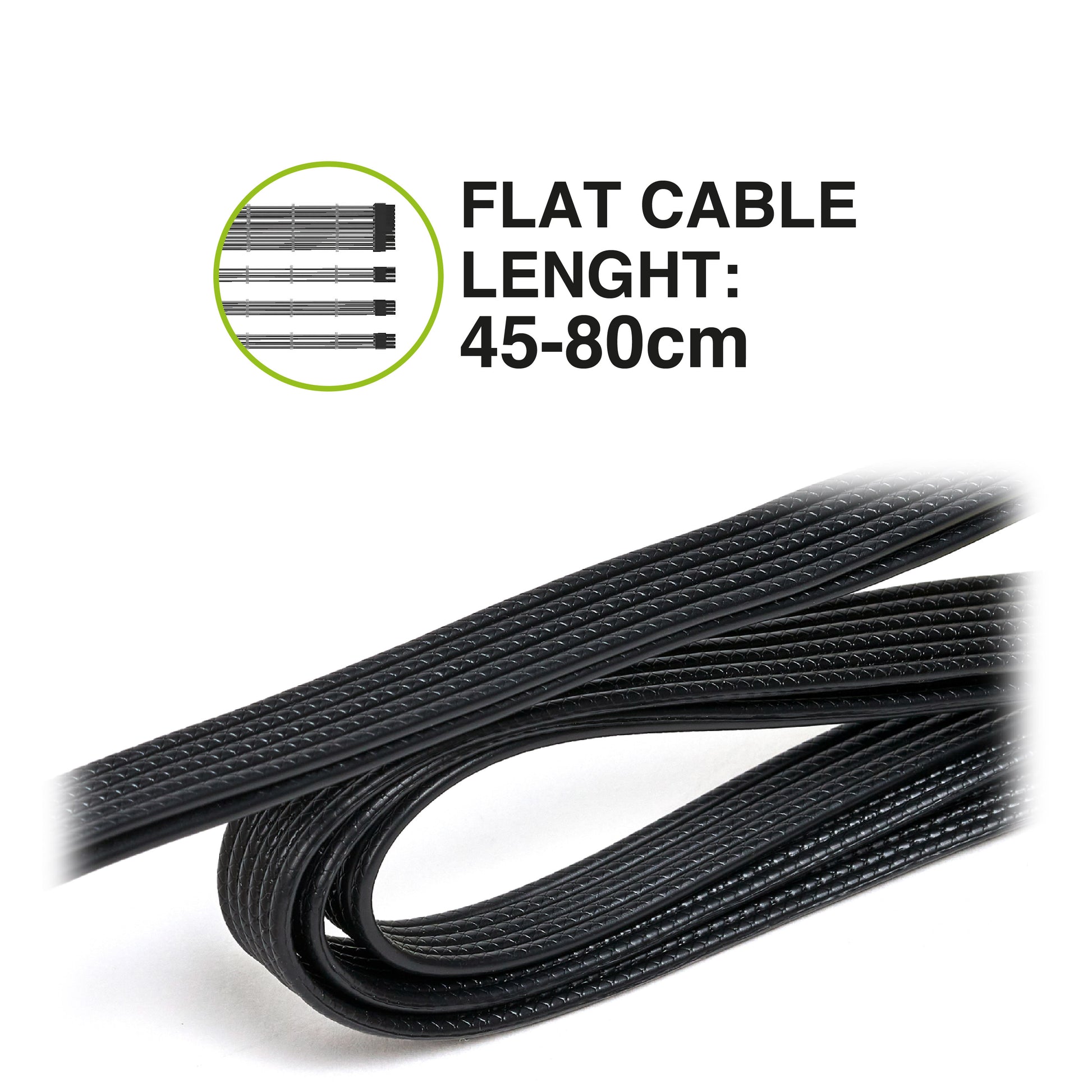 - Cavi flat di colore nero da 450mm a 800mm e cavo alimentazione Mainboard con calza di colore nero
